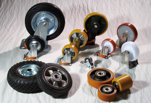 Sono fornibili ruote in gomma – nylon – adiprene – desmopan con supporti serie media o pesante.